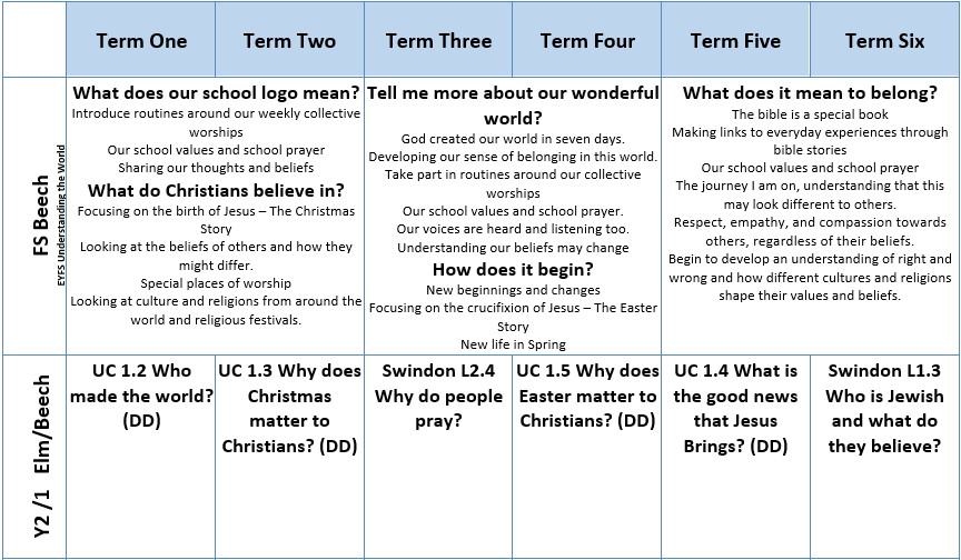 | Mission Sentence | At Brinkworth Earl Danby's School we believe that religious education is a vital part of helping children to develop into thoughtful, reflective learners. A subject that not only stands alone, but one that should be an integral part of our daily lives. Religious education affords pupils both the opportunity to see the religion and non-religion in the world and the opportunity to make sense of their own place in that world. (DFE 2021). |